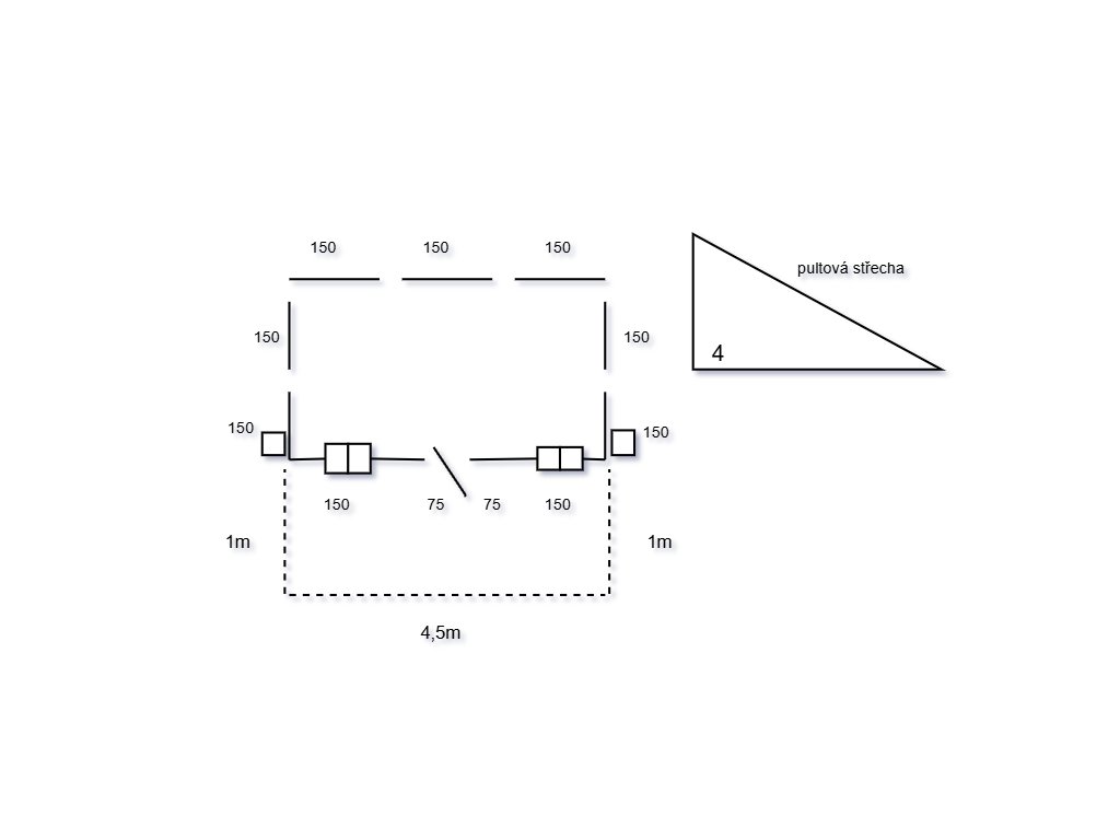 - Typ střechy: pultová