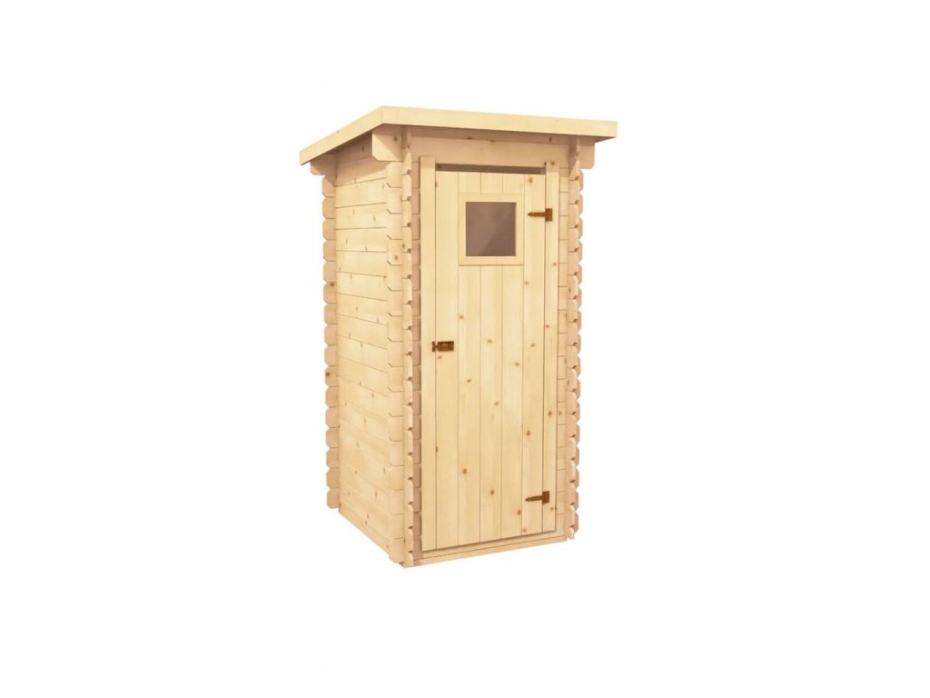 Roubená kadibudka ze smrkového dřeva. Jednoduchý design, ideální pro chaty, chalupy a zahrady.