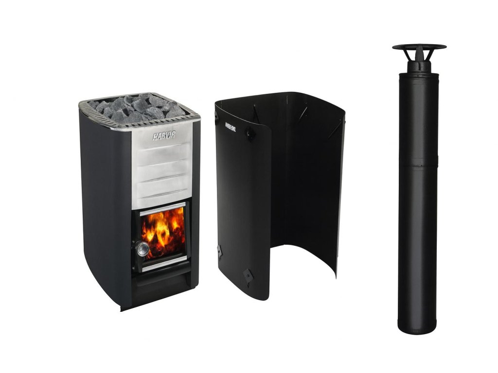 Kompletní sada pro vytápění vaší sauny na dřevo. Tento set obsahuje vše potřebné, abyste mohli kamna bezpečně a pohodlně používat.