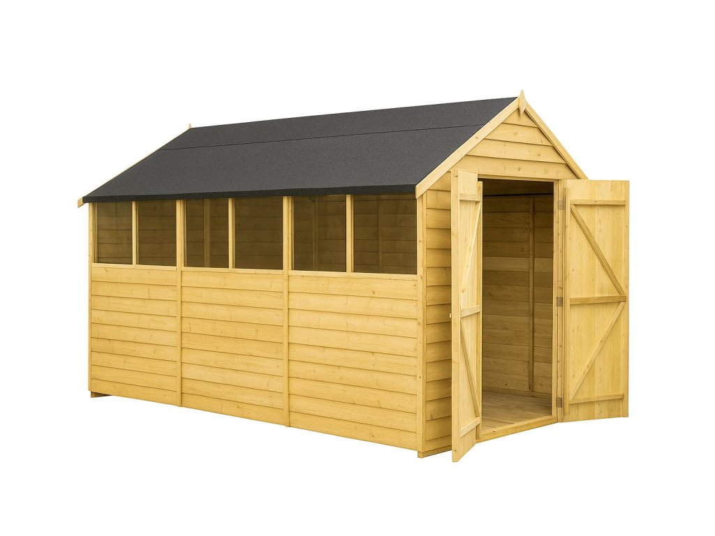 Praktický zahradní domek s klasickou sedlovou střechou, který nabízí dostatek prostoru pro uskladnění nářadí, zahradní techniky i sezónních věcí.
