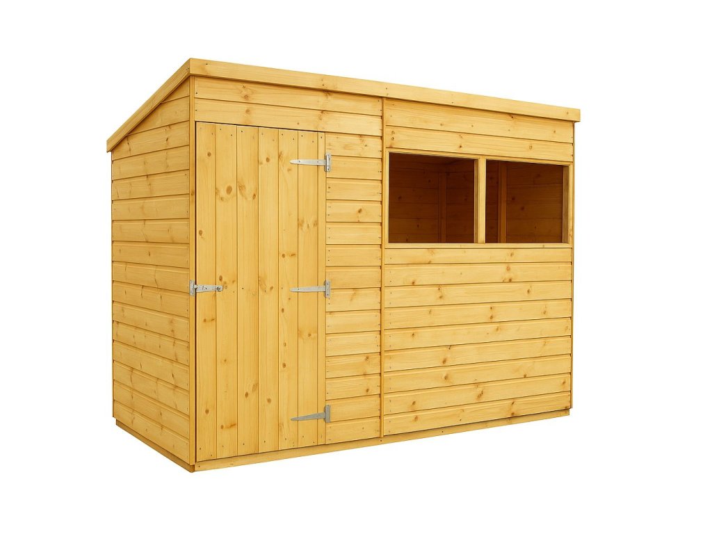 Praktický zahradní domek s pultovou střechou a celkovou plochou 9 m². Vhodný jako sklad zahradní techniky, nářadí nebo sezónního vybavení.