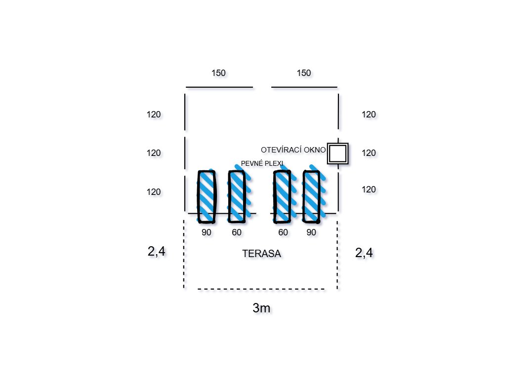 - Rozměr terasy: 2,4 x 3 m